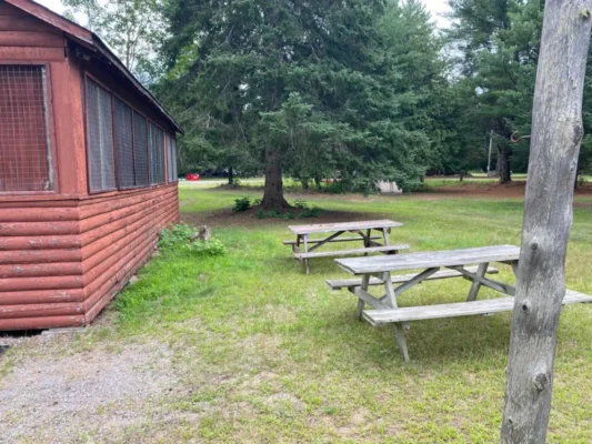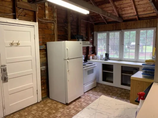 Snug little studio cottage with 1 queen bed and a bunk bed. Perfect for the family or for a couples’ getaway. The cottage situated on a beautiful 100 acre campground, with private sanded beach. The bathrooms are located separately just outside the cottage. There are many washrooms and indoor and outdoor showers as well.
